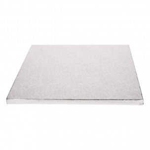 Een vierkante drum in de kleur zilver van hoge kwaliteit met luxe uitstraling. Dient als onderbord voor taarten en heeft een grootte van circa 27,9 x 27,9 cm en is 12 mm dik. Het onderbord voor taarten is bij normaal gebruik meerdere malen te gebruiken.