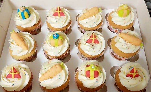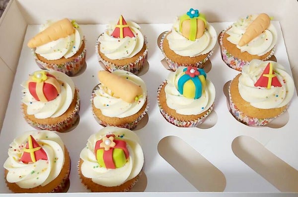 Sinterklaas cupcakes met diverse fondant decoraties prijs per stuk